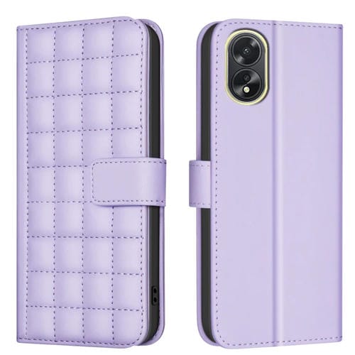 Para Oppo A38 4G / A18 4G Funda de Cuero para Teléfono con Textura Cuadrada (Púrpura)