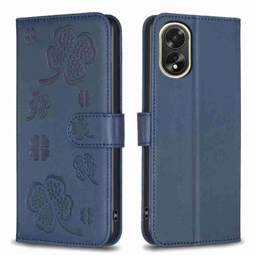 Para Oppo A38 / A18 4G Funda de Cuero con Relieve de Cuatro Hojas (Azul)