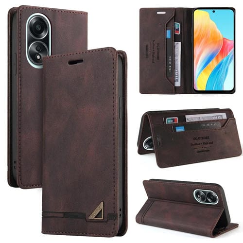 Para Oppo A58 4G Skin Feel Funda de Cuero con Tapa Horizontal con Cepillo Antirrobo y Soporte (Marrón)