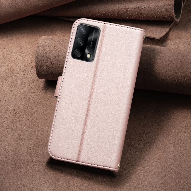 Para Oppo A74 4G / F19 4G Funda de Cuero para Teléfono con Textura Cuadrada (Oro Rosa)