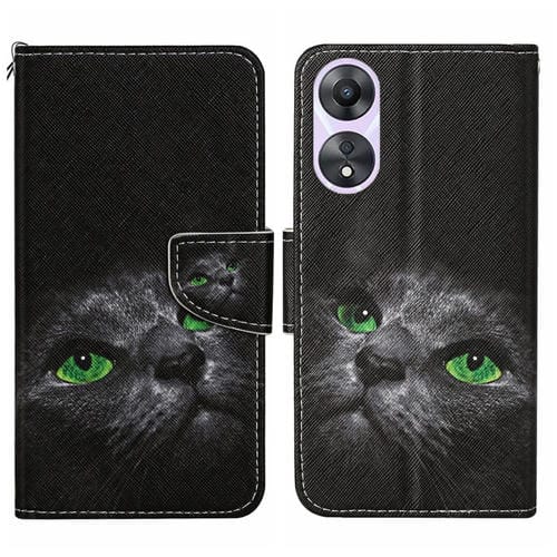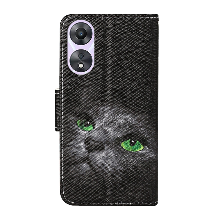 Para Oppo A78 4G Funda de Cuero para Teléfono con Patrón de Dibujo Coloreado (Gato Negro)