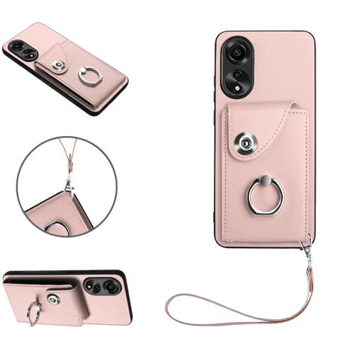 Para Oppo A78 4G Global Organ Card Bag Ring Holder Funda para Teléfono Pu con Cordón (Rosa)