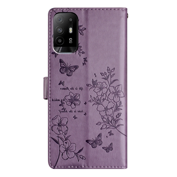 Para Oppo A94 5G Butterfly Love Flower Funda de Cuero para Teléfono En Relieve (Púrpura)