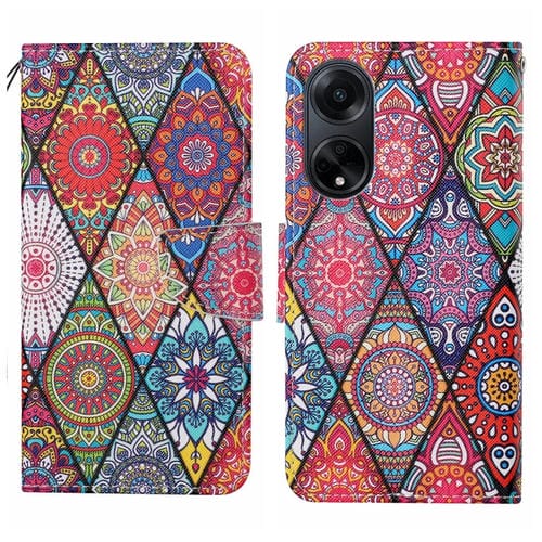 Para Oppo A98 Funda de Cuero para Teléfono con Patrón de Dibujo de Colores (Tótem de Diamante)