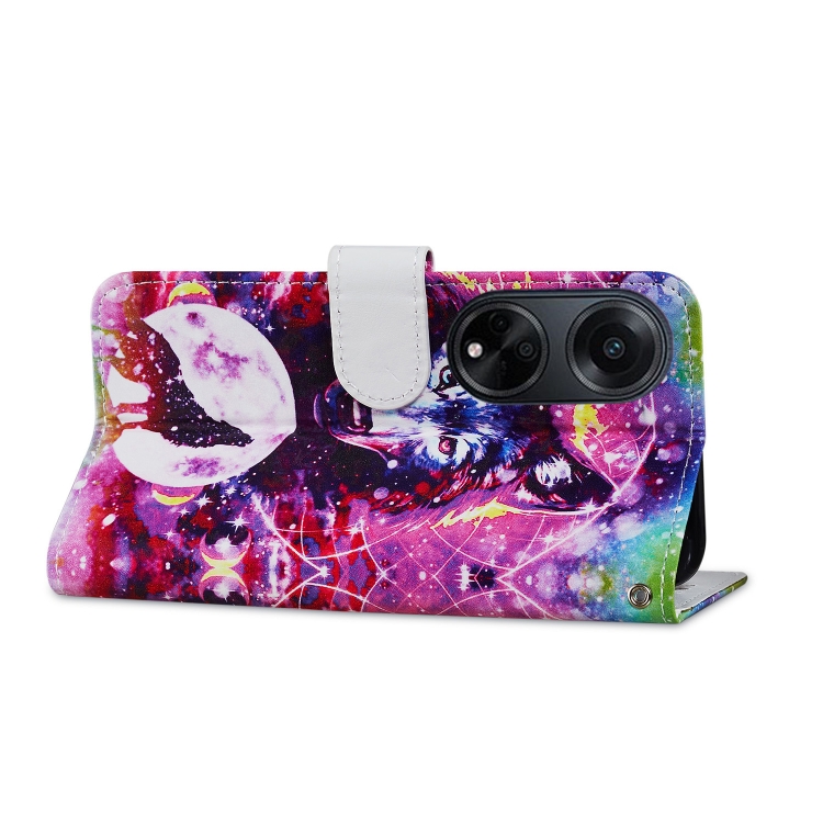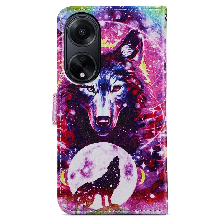 Para Oppo A98 Funda de Teléfono de Cuero con Tapa Horizontal con Patrón Pintado (Tótem de Lobo)