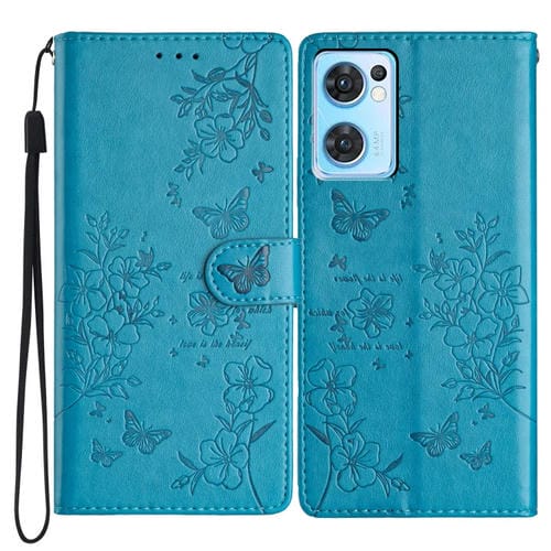 Para Oppo Find X5 Lite Funda para Teléfono de Cuero con Relieve de Flor de Amor y Mariposa (Azul)
