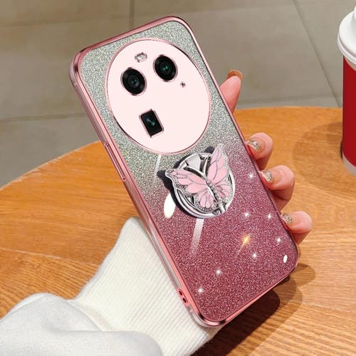 Para Oppo Find X6 Funda para Teléfono de TPU con Soporte de Mariposa con Brillo Degradado Plateado (Rosa)