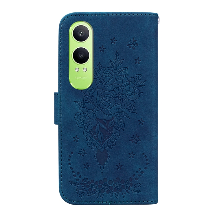 Para Oppo K12X Butterfly Rose Funda de Cuero para Teléfono En Relieve (Azul)