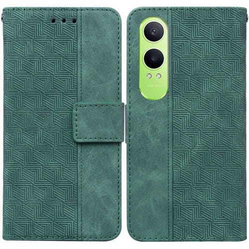 Para Oppo K12X Funda de Cuero con Relieve Geométrico (Verde)