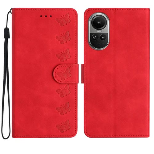 Para Oppo Reno10 5G / Reno10 Pro 5G Funda para Teléfono de Cuero con Relieve Global Seven Butterflies (Rojo)