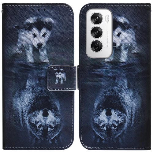Para Oppo Reno12 5G Funda de Cuero con Tapa para Teléfono con Dibujo Coloreado Global (Lobo y Perro)