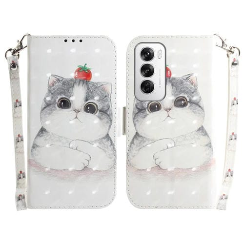 Para Oppo Reno12 5G Global 3D Funda de Cuero con Tapa Horizontal de Color (Lindo Gato)