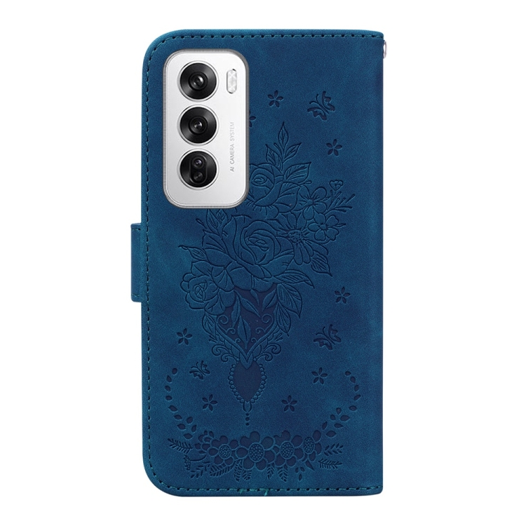 Para Oppo Reno12 5G Global Butterfly Rose Funda de Cuero para Teléfono En Relieve (Azul)