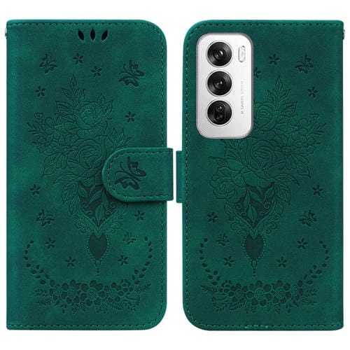 Para Oppo Reno12 5G Global Butterfly Rose Funda de Cuero para Teléfono En Relieve (Verde)