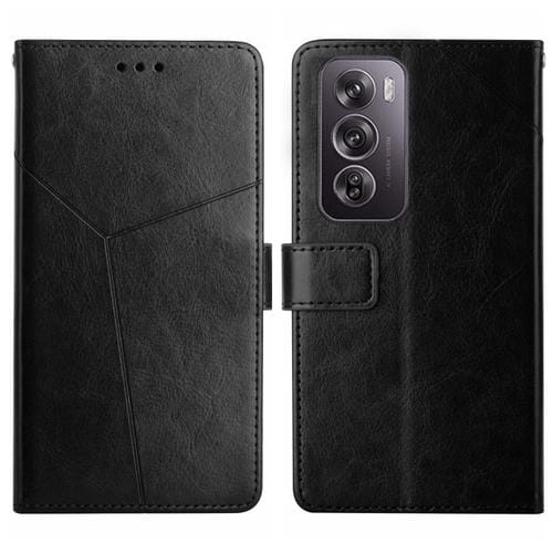 Para Oppo Reno12 5G Global Funda de Cuero con Tapa con Patrón En Forma de y (Negro)
