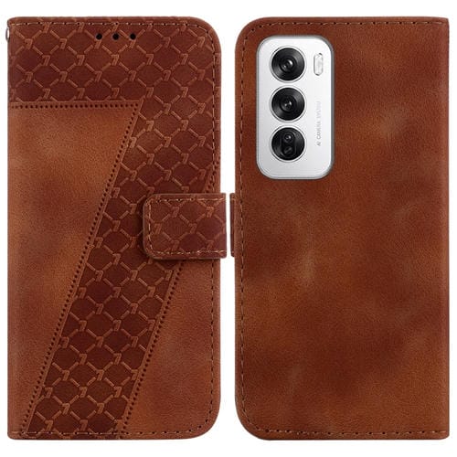 Para Oppo Reno12 5G Global Funda de Cuero En Relieve con Forma de 7 (Marrón)