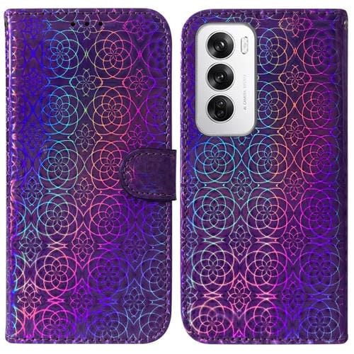 Para Oppo Reno12 5G Global Funda de Teléfono de Cuero con Hebilla Magnética Colorida (Púrpura)