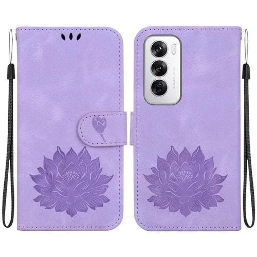 Para Oppo Reno12 5G Global Lotus Funda de Cuero En Relieve para Teléfono (Púrpura)