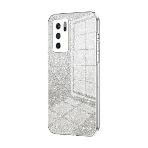 Para Oppo Reno6 Pro Estuche para Teléfono Galvanizado con Polvo de Brillo Degradado Indio (Transparente)