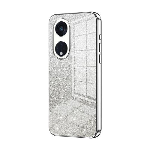 Para Oppo Reno8 T 5G Caja de Teléfono Galvanizada con Polvo de Brillo Degradado (Plata)