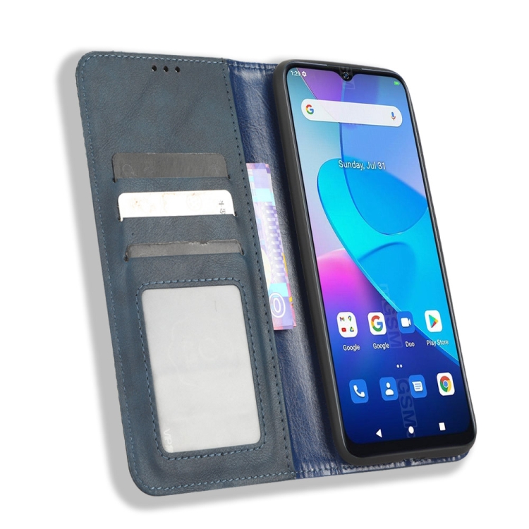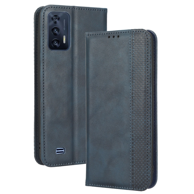 Funda de Cuero para Oukitel C31 con Hebilla Magnética y Textura Retro (Azul)