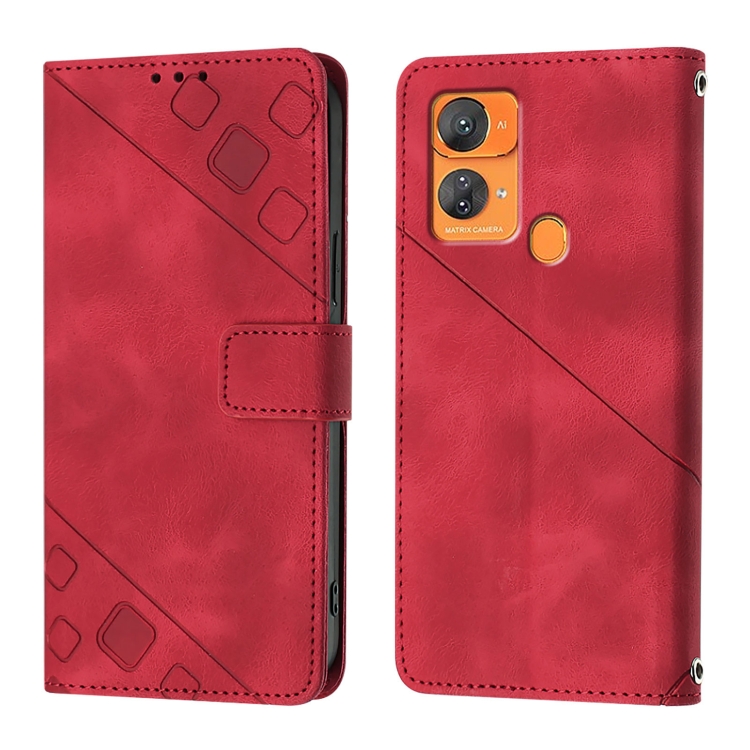 Funda de Cuero para Oukitel C33 Skin Feel con Relieve (Rojo)
