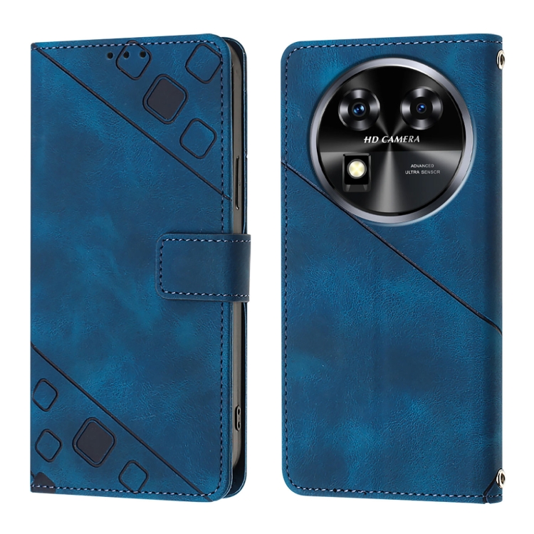 Funda de Cuero para Oukitel C37 Skin Feel con Relieve (Azul)