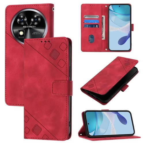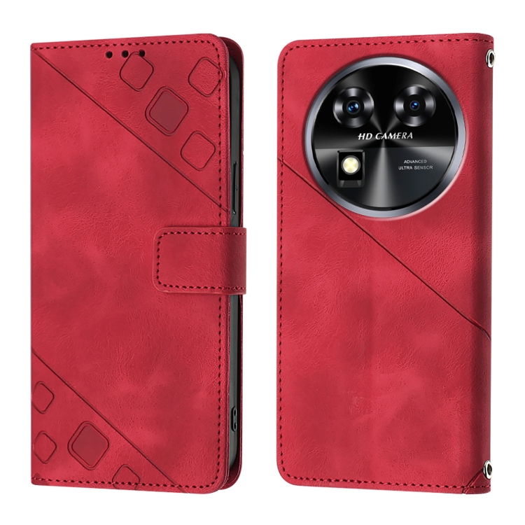 Funda de Cuero para Oukitel C37 Skin Feel en Relieve (Rojo)