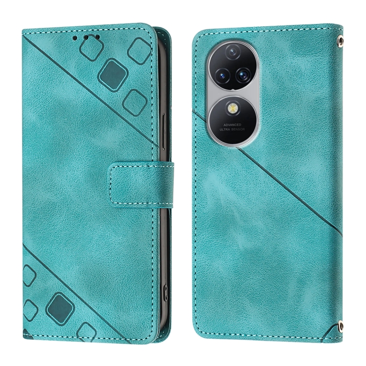 Funda de Cuero para Oukitel C38 Skin Feel en Relieve (Verde)