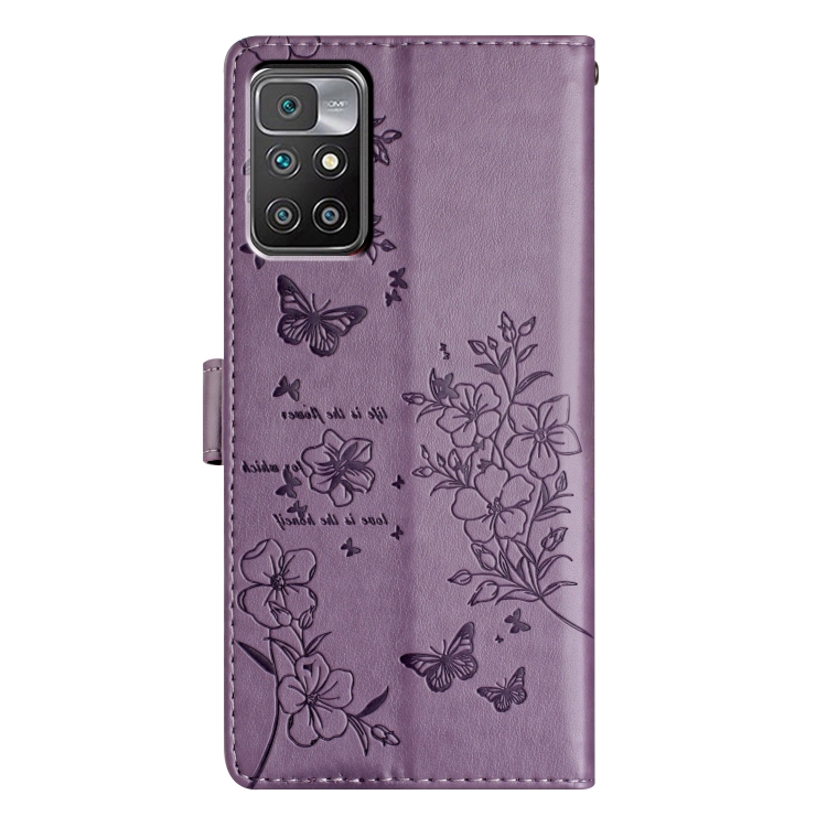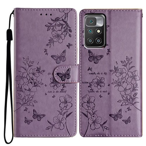 Para Redmi 10 2022 Funda de Cuero para Teléfono con Mariposas y Flores (Púrpura)