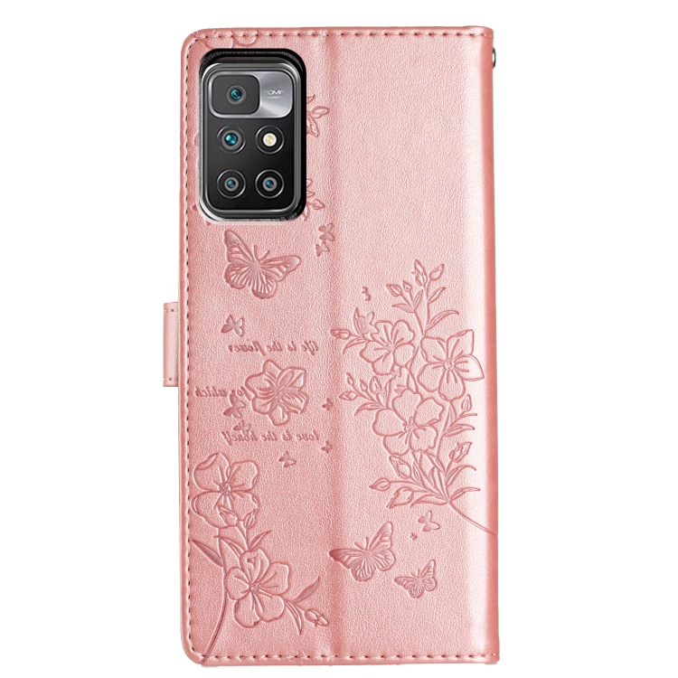 Para Redmi 10 Funda de Cuero para Teléfono con Mariposas y Flores (Oro Rosa)