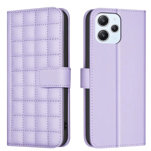 Para Redmi 12 4G Funda de Cuero con Textura Cuadrada (Púrpura)