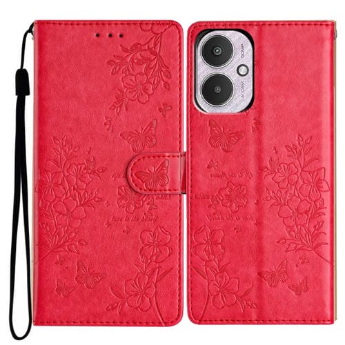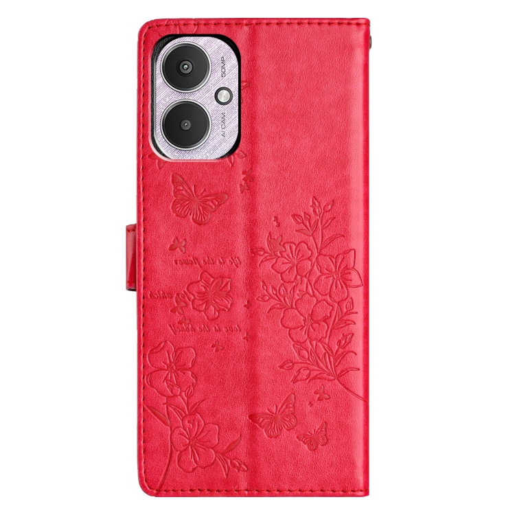Para Redmi 13C 4G Funda de Cuero para Teléfono con Mariposas y Flores (Rojo)