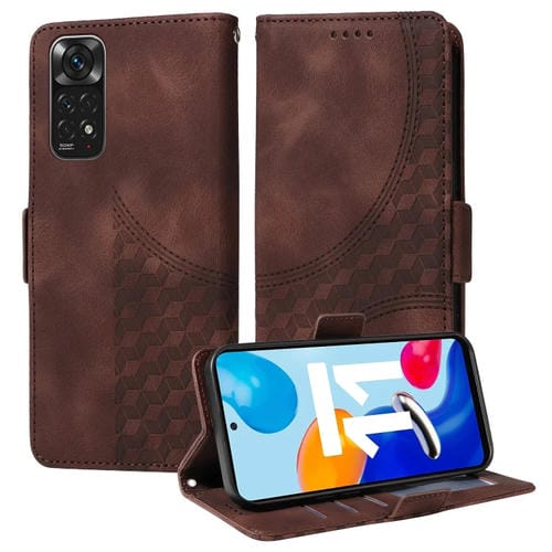 Para Redmi Note 11 4G / 11S Funda para Teléfono de Cuero Estrellado con Rombo En Relieve Global (Marrón)