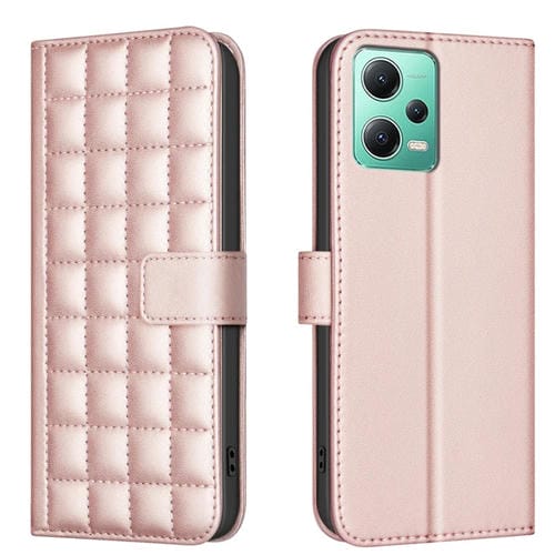 Para Redmi Note 12 5G Global / Xiaomi Poco X5 Funda para Teléfono de Cuero con Textura Cuadrada (Oro Rosa)