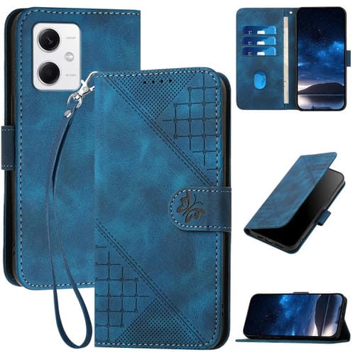 Para Redmi Note 12 5G Yx0080 Funda de Cuero con Tapa y Patrón En Relieve de Mariposa En Cuadrícula con Cordón (Azul Oscuro)