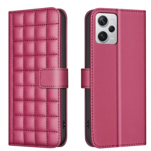 Para Redmi Note 12 Pro+ Funda de Cuero para Teléfono con Textura Cuadrada Global (Rojo)