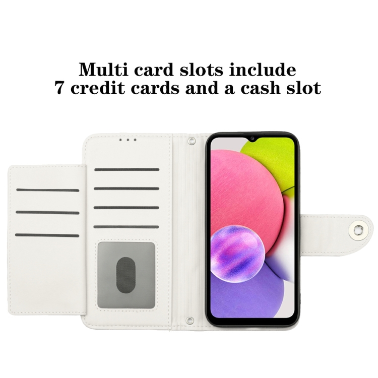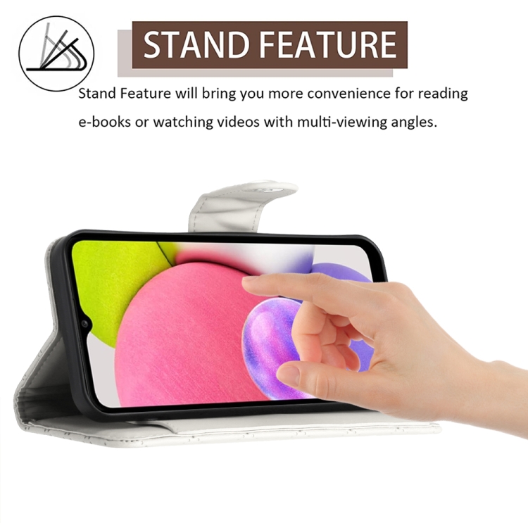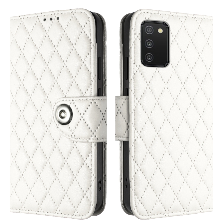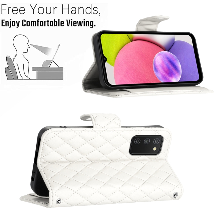 Funda para Teléfono Samsung Galaxy A03S Cuero con Tapa Textura Rómbica y Cordón (Blanco)