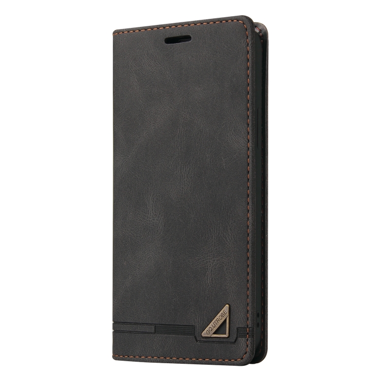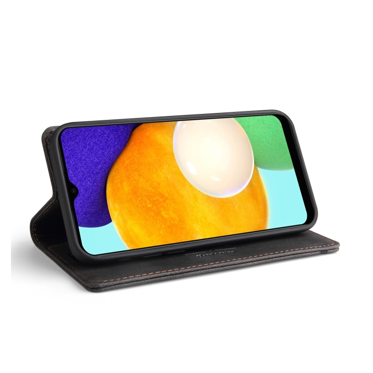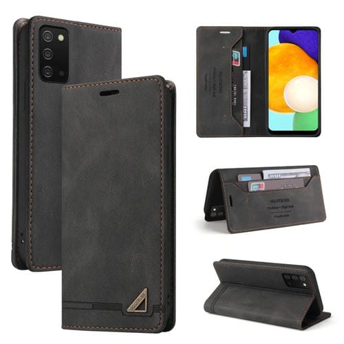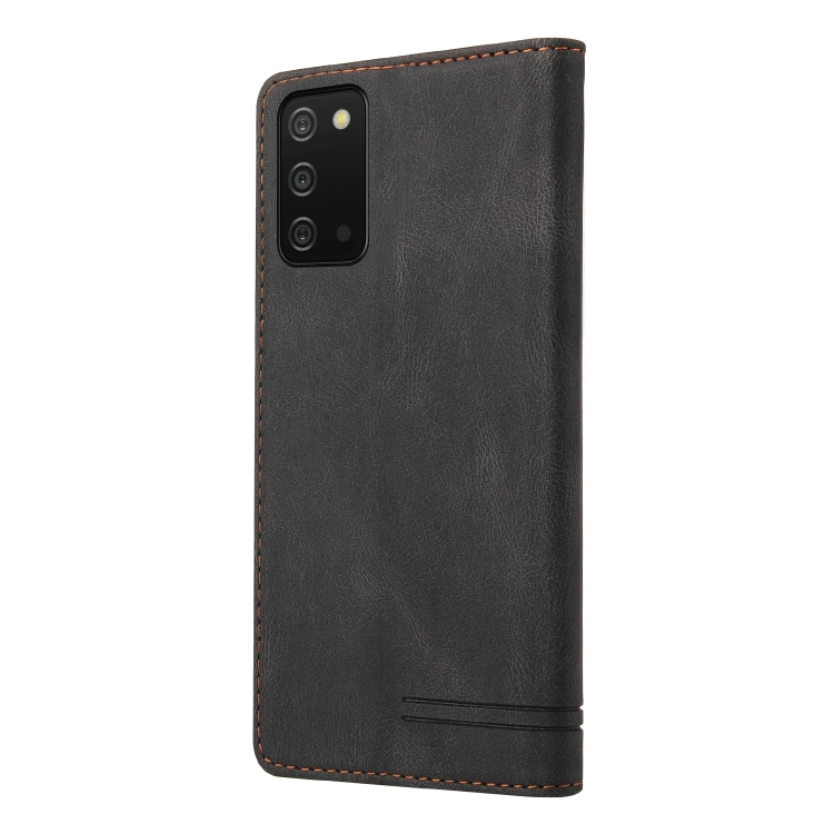 Funda de Cuero Samsung Galaxy A03S Skin Feel con Tapa Horizontal Cepillo Antirrobo y Soporte (Negro)