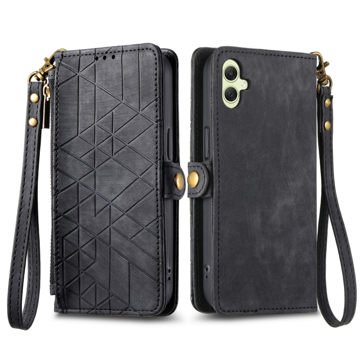 Estuche para Teléfono Samsung Galaxy A05 Cuero Hebilla Lateral Billetera Cremallera (Negro)