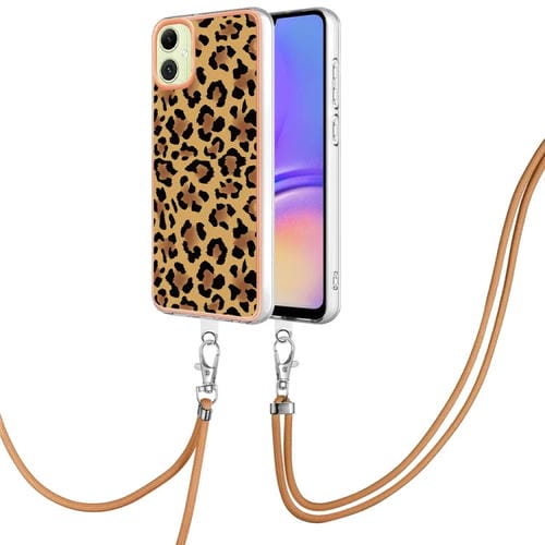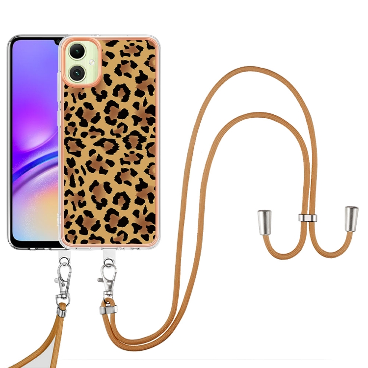 Estuche para Teléfono Samsung Galaxy A05 Imd Doble Cara con Galvanoplastia y Cordón (Leopardo)