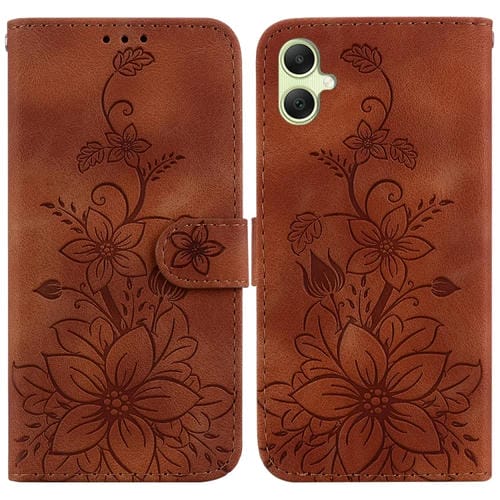 Funda de Cuero Samsung Galaxy A05 con Relieve Lily (Marrón)
