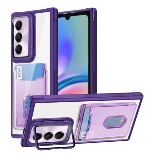 Estuche para Teléfono Samsung Galaxy A05S 4G TPU Híbrido Acrílico con Soporte para Tarjeta (Púrpura)