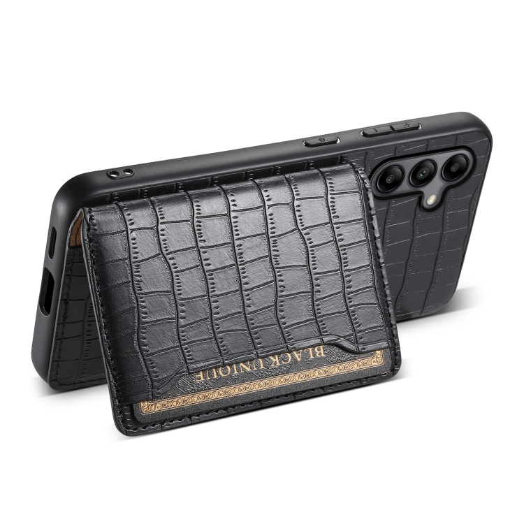 Estuche para Teléfono Samsung Galaxy A05S Bolsa para Tarjetas Textura de Cocodrilo (Negro)