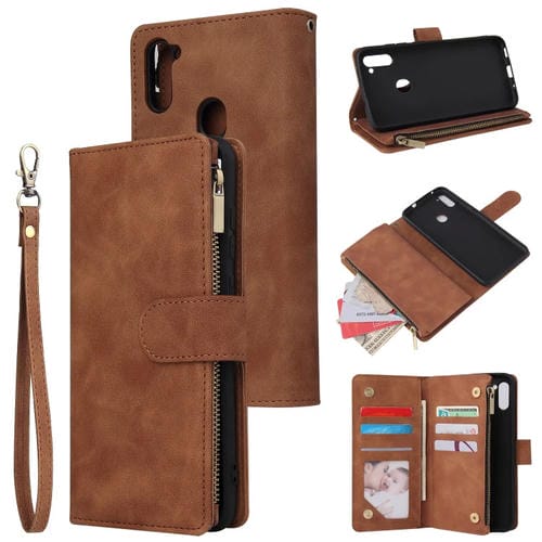 Estuche para Teléfono Samsung Galaxy A11 Us Cuero con Billetera y Cremallera Multifuncional (Marrón)