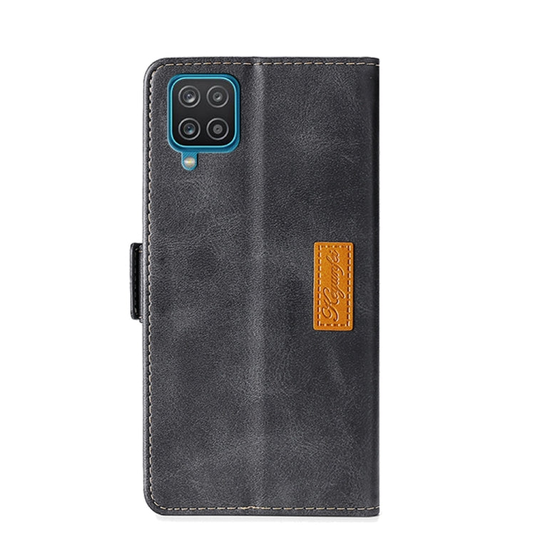 Estuche de Cuero Samsung Galaxy A12 Textura Retro Hebilla Lateral Tapa Horizontal Soporte Ranuras Tarjetas Billetera (Negro)