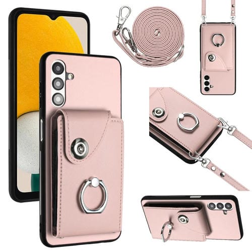 Funda para Teléfono Samsung Galaxy A13 5G A04S con Soporte para Anillo Bolsa para Tarjeta y Cordón Largo (Rosa)