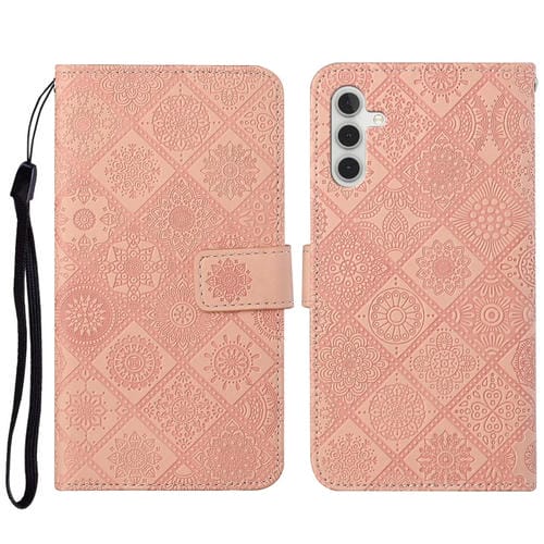 Estuche para Teléfono Samsung Galaxy A14 5G Cuero Patrón en Relieve Estilo Étnico (Rosa)