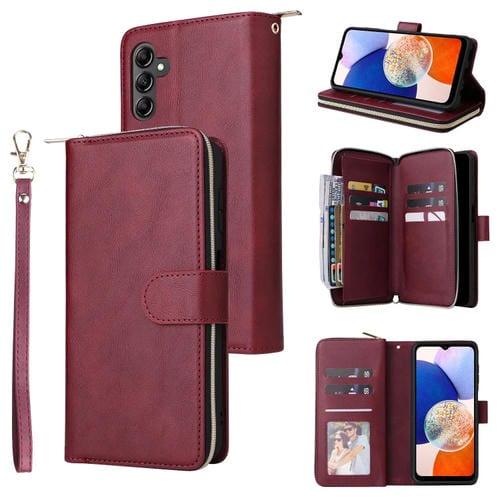 Funda Tipo Billetera Samsung Galaxy A15 5G 9 Ranuras para Tarjetas con Cremallera (Rojo Vino)