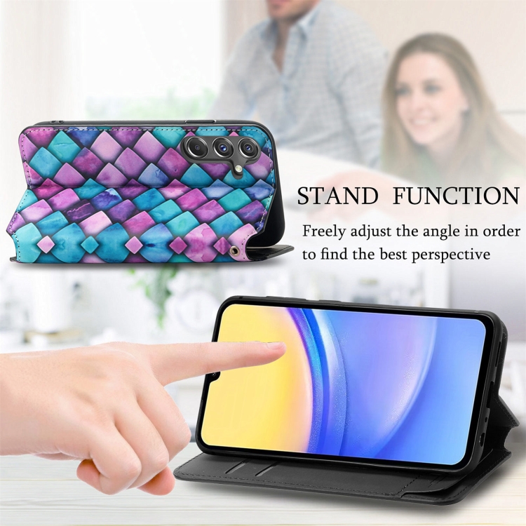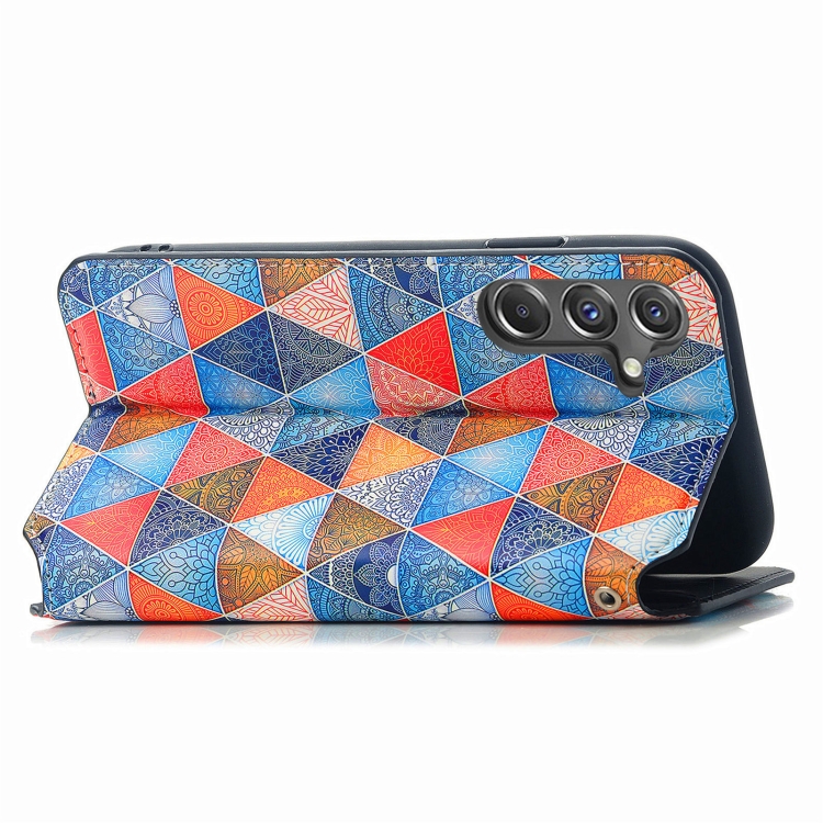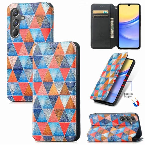 Funda para Samsung Galaxy A15 Caseneo Cuero Magnética con Diseño Rhombus Mandala